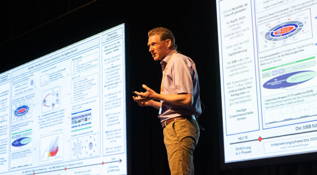 Künstliche Intelligenz + Mensch: Zusammen unschlagbar! Reinhard Karger, M.A. - Unternehmenssprecher Deutsches Forschungszentrum für Künstliche Intelligenz, DFKI begeisterte mit seinem Vortrag über den aktuellen Stand und die Bedeutung von schwacher und starker KI im Zusammenspiel mit uns Menschen. Danach gab Lukas Spengler, Leiter BIM@SBB, mit seinem Vortrag Digitalisierung bei der SBB hochspannende Einblicke in die Digitalisierungsstrategie der SBB.