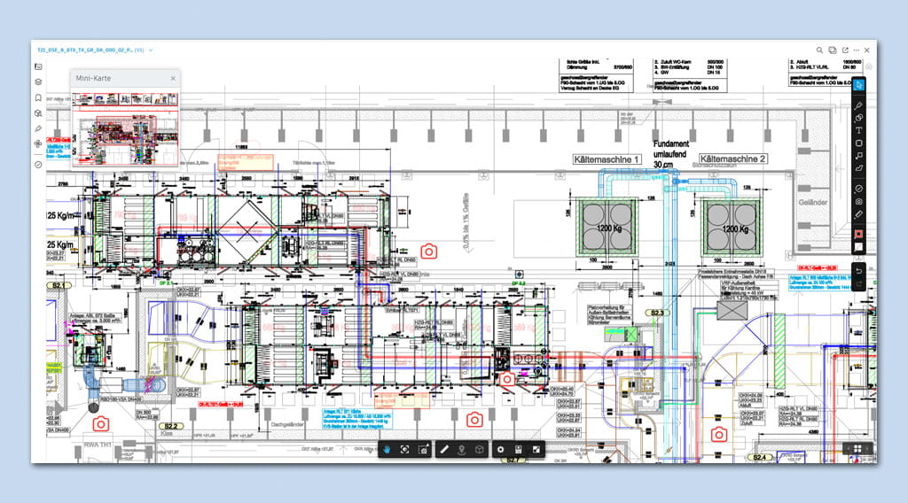 klarer: Anmerkungen, die der Obermonteur vor Ort im Plan skizziert,