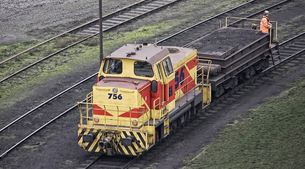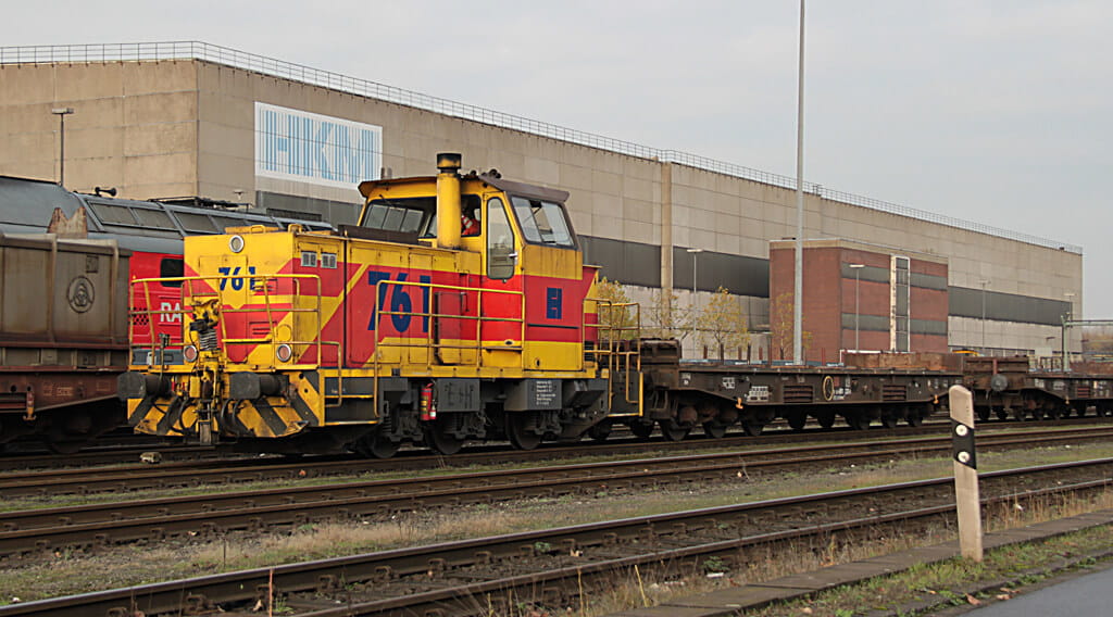 groß. Auf einem etwa 95 km langen Gleisnetz werden Rohstoffe,